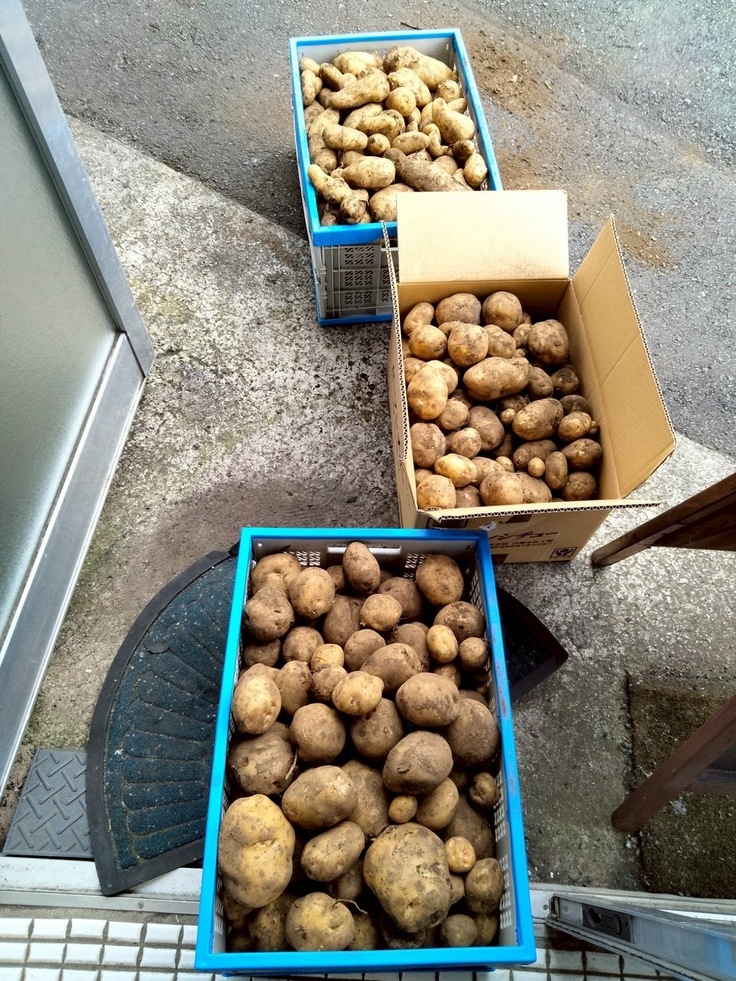 男爵、きたあかり、メークインと3種類。各家庭に配布し、食堂でも連日使わせて頂きました。