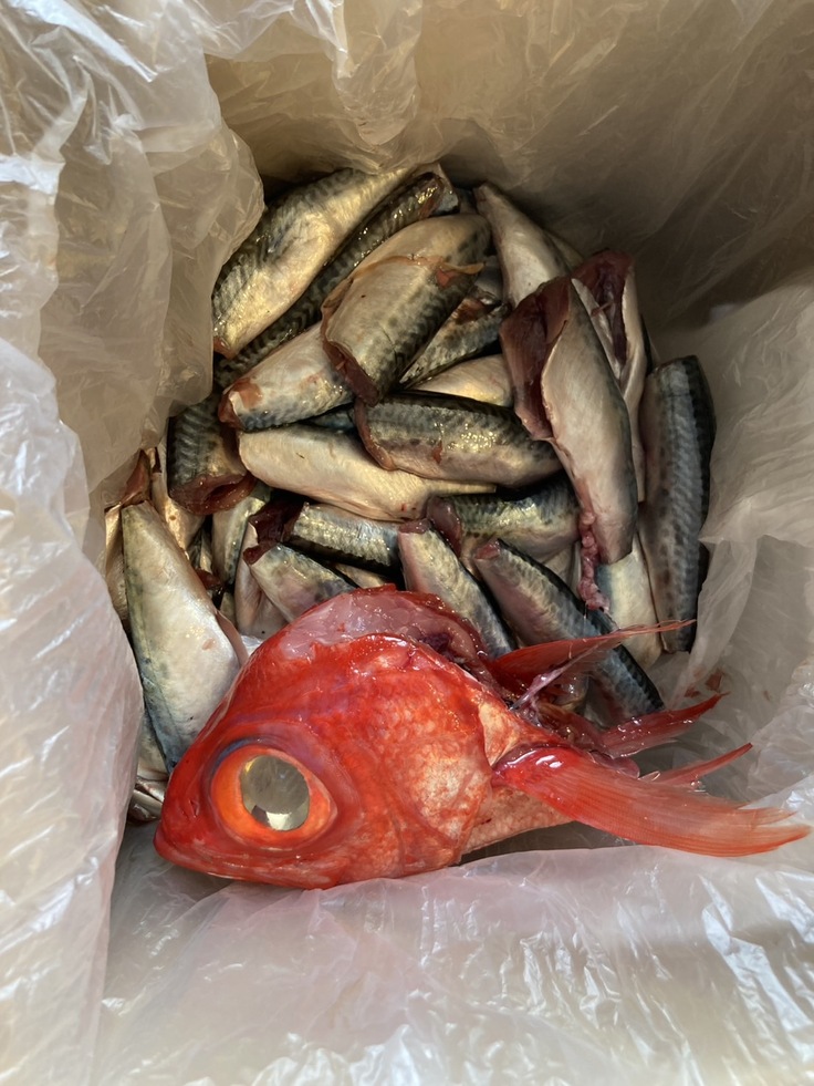 宇田水産さんより、沢山の鯖と金目鯛の頭を頂きました。