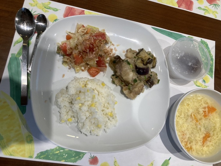 30日は、スタッフ欠員から、調理がバタバタしていましたが、なんとか時間内に作り上げることができました。食堂利用は、いつものご家族で、夏野菜を工夫した夏バテでも食べやすい献立だったので、特に大人の方が喜んで食べられていた印象です。