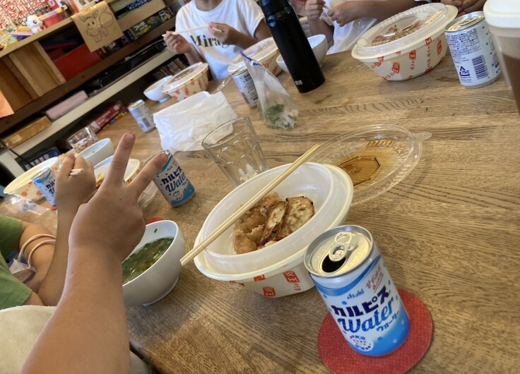 えんくるに早めに集合して王将弁当を食べよう!という初のきっさランチ企画を行いました。