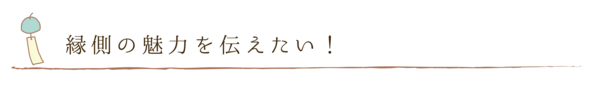 それもこれも、少なくなってきている縁側を少しでも「縁側っていいよね」という再認識するきっかけになればいいなと思っています。