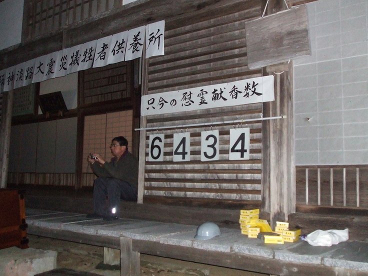 阪神淡路大震災で犠牲となられた皆さまを6434回の鐘を撞き、6434本のお線香を立て追悼の供養をさせて頂きました。