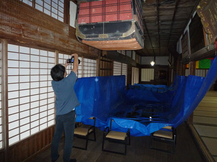 警報級の雨予想。。。前まではブルーシートが一つでしたが二つになりました。でももう少しです、皆様の応援で葺き替え工事が出来ます。頑張ります! 丁度、新聞記者さんが取材に来られてましてびっくりされてました。。🤣