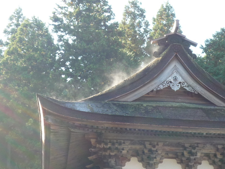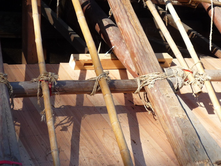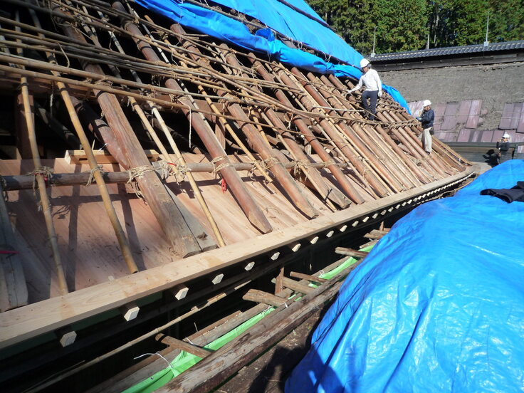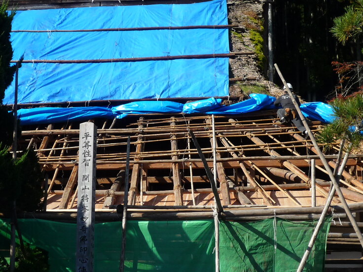 ブルーシートの所が本堂屋根です