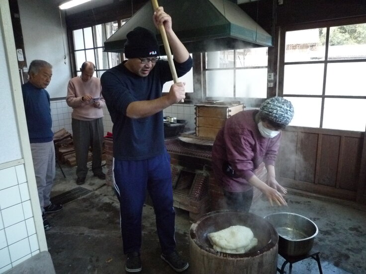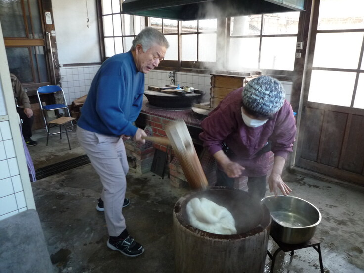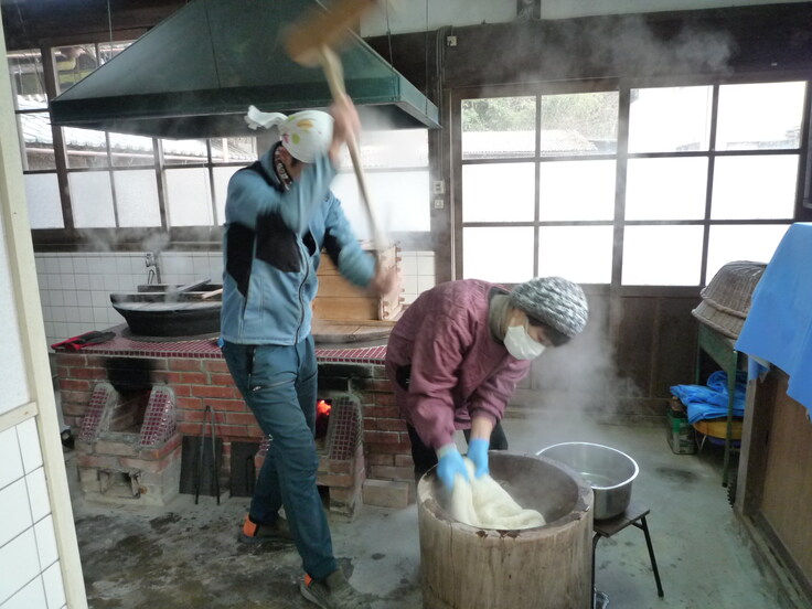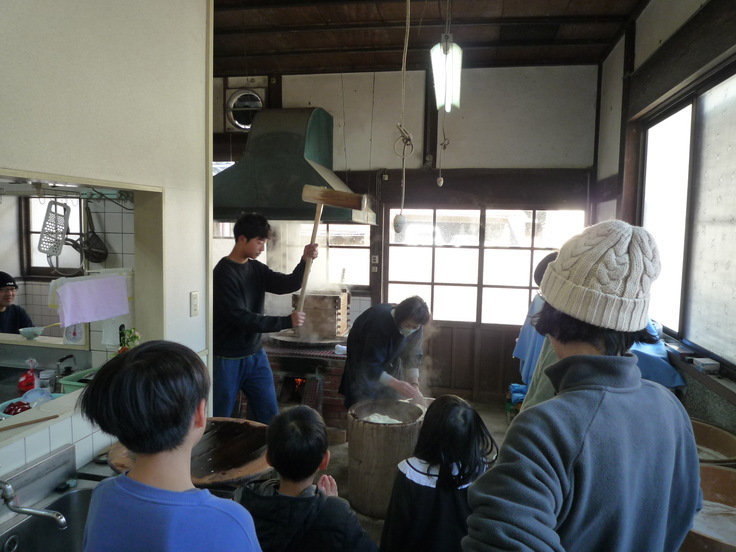 皆さまのご支援で完成した屋根にお餅つきの快音が響きました。