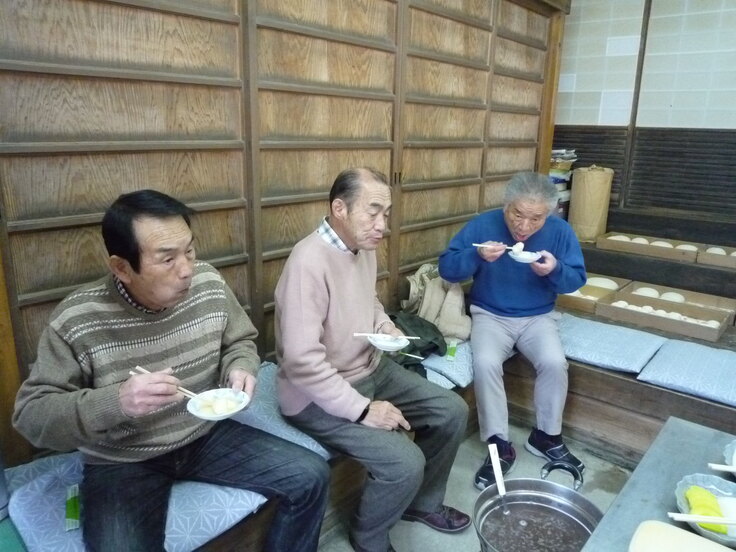三寶寺 慧日寺 共同お餅つき 皆さまのご支援で完成した屋根にお餅を搗く音が響き渡りました‼