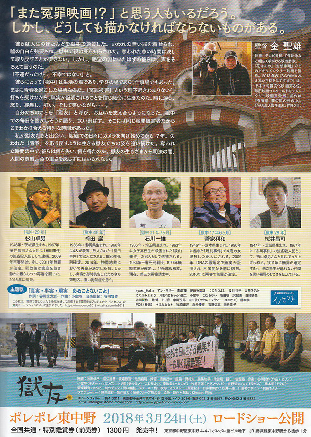当番組の出演者の1人、金聖雄監督の最新作『獄友』が完成し、3/24(土)ポレポレ東中野での初上映を皮切りに全国でロードショー公開が展開されます。このタイトルは「ごくとも」と読みます。獄中の友達、略して獄友。