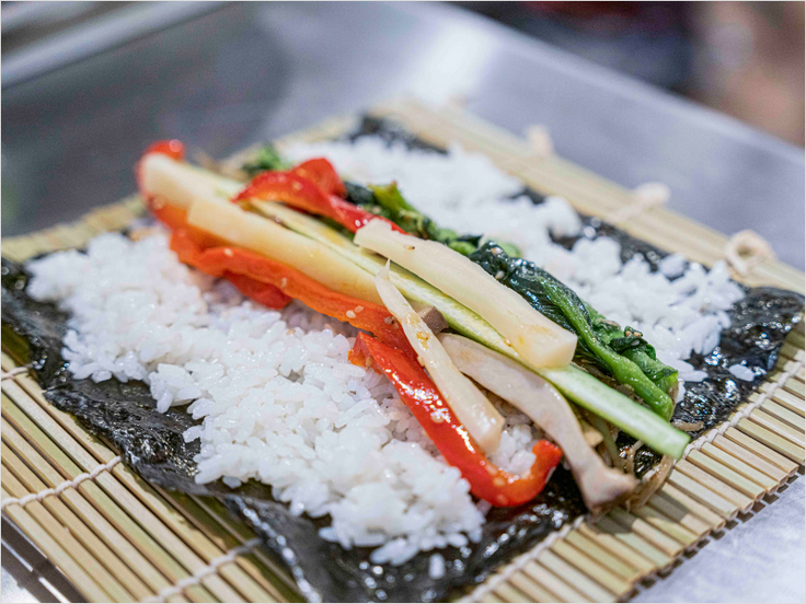 MERCY Vegan Factoryで大人気のライスロールです。ヴィーガンやベジタリアン食に興味のある方、美容や健康を気にされる方、アレルギーをお持ちの方などに安心して召し上がっていただけますので贈答用にも最適。佐賀産の上質な焼きのり、国産「ピロール米」に7種の野菜を入れて、職人が一本一本、巻き上げました。ごま油の風味が絶妙で、いくらでも食べられる!と好評。安心で安全な美味しい!「ヴィーガン キンパ」をご賞味ください。