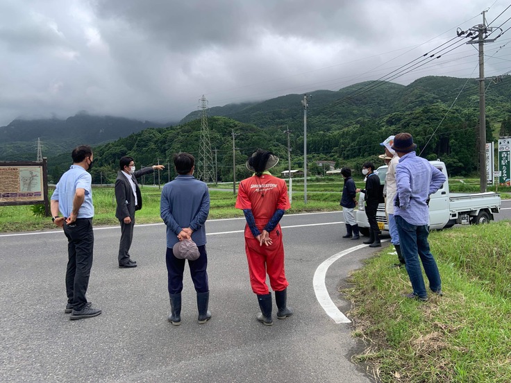 <垂水市高城馬込地区の農家の皆さんと地元議員による現地協議の様子>
