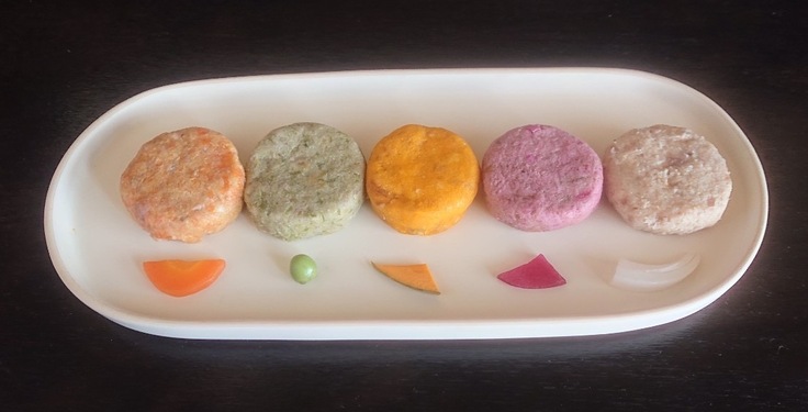一口サイズ(直径4.5cm・厚さ2cm・30gのマカロンサイズ )みんな大好きハンバーグ風。 気軽に、自分のワクワクする色のビューティーミートを選んで食べてみてください。