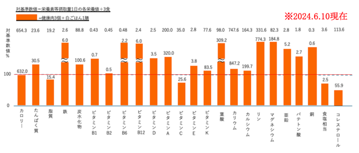 私たちは、農林水産省、栄養素等表示基準値の日本食品標準成分表(文部科学省 科学技術・学術審議会資源調査分科会 報告)等のデータベース・原材料メーカーから入手した栄養値を元に、日本人の食事摂取基準のスコアを上回るように研究開発を重ね、つくられたのが「ヘルスミート」です。