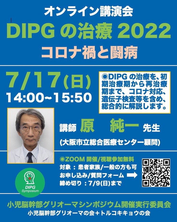 2022年7月17日、小児脳腫瘍の一種DIPG(小児脳幹部グリオーマ)のオンライン講演会を他の団体とともにトルコキキョウの会が実施します。このような活動も行っております。