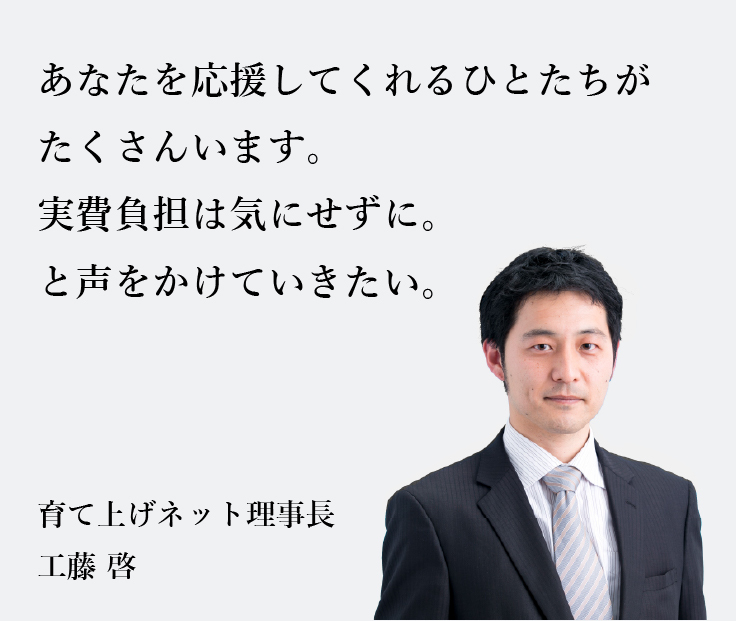 ・ ご支援完了時に「応援コメント」としていただいたメッセージは、本プロジェクトのPRのために利用させていただく場合があります。