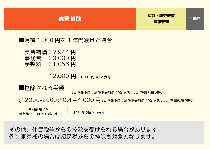 ※上記例の場合、寄付金受領証は12,000円を発行します。