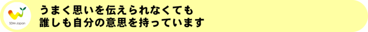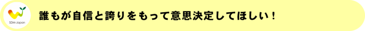 私たち一般社団法人日本意思決定支援ネットワーク(SDM-Japan)は、障害のあるなしにかかわらず、誰もが自信と誇りをもって自分の思いを述べ、心からの希望に基づいて意思決定することができる社会を目指しています。