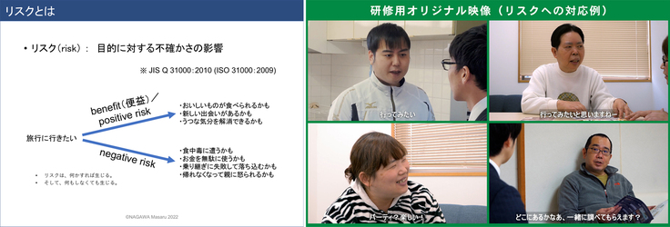 実践的に考えられる研修用のオリジナル映像も作成。丁寧に考えて準備すれば可能なことをご本人に諦めさせてしまうことのない取組み方について学んでいただくことを通じて、ご本人のチャレンジしたい気持ちを大切にする社会の実現を目指します。