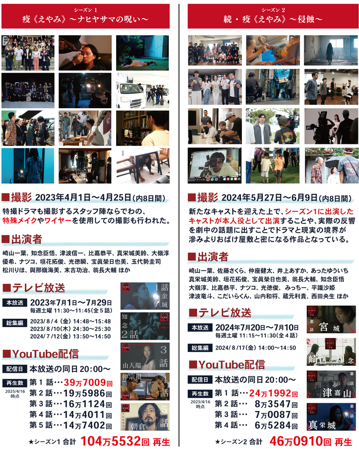 シーズン3は出演者オーディションを開催し、沖縄県内外で活躍する俳優・タレントを中心に実力派が集結!! 疫《えやみ》第三章の恐怖を熱演していただきました!