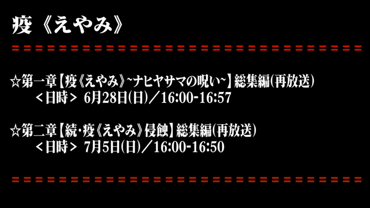 【疫《えやみ》第一章/第二章ドラマ総集編、再放送決定!】