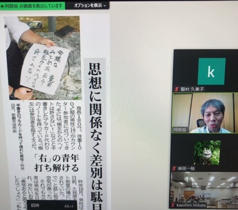 「阿部さんをはじめ、ヘイトスピーチ集団とたたかっている人たちがいらっしゃることに感動しました。勇気がいることですね。声をかけていただきありがとうございました」