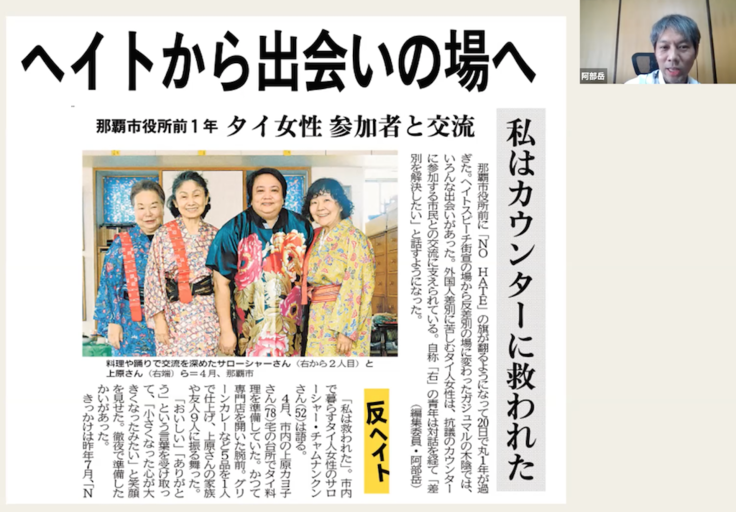 阿部さんの那覇ヘイト街宣への取材のきっかけは大きく3つ。