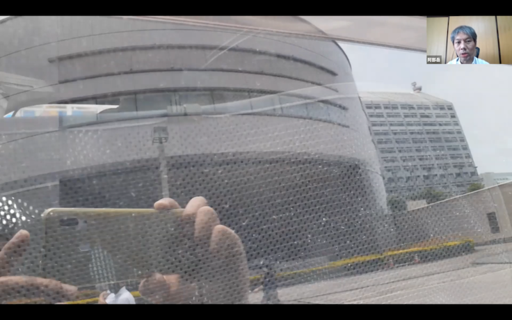 レイシストの車の窓に映り込む阿部さんのスマホ