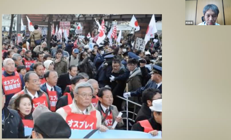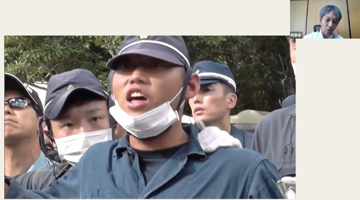 しかし、当時の沖縄及び北方対策担当大臣 鶴保庸介は「差別とは言い切れない」、当時の大阪府知事 松井一郎は「どっちもどっち」「反対する側もめちゃくちゃ言ってるでしょ」と、官僚と派遣元のそれぞれのトップが問題視しないどころか差別発言を庇いました。「全然”どっちもどっち”じゃない」と阿部さんは断言します。これは、地元住民が「やめてくれ」と言って身体を張って抵抗している基地(ヘリパッド)を無理やり建設しようとしている国=公権力から投げかけられた、明確な「ヘイトスピーチ」なのだと。