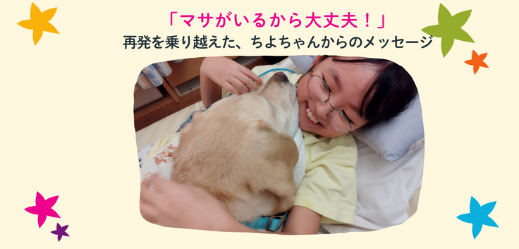 5歳で急性骨髄性白血病を発症したものの寛解し、元気に過ごしていた小学4年生の秋。運動会の練習に励んでいた頃、貧血から再発が判明。国立成育医療研究センターでの入院期間中、骨髄移植を経て約11ヶ月の入院生活を支えてくれたのはホスピタル・ファシリティドッグ®︎*のマサでした。ちよちゃんとお母さまにマサと過ごした時間をふり返っていただきました。