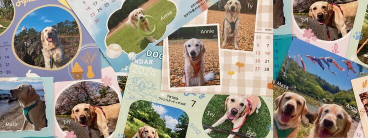 現在4病院で5頭のファシリティドッグが勤務しています。彼らの写真は日々ハンドラーたちが撮りためており、ハンドラー自らが厳選した写真の中からカレンダーを作成しました。