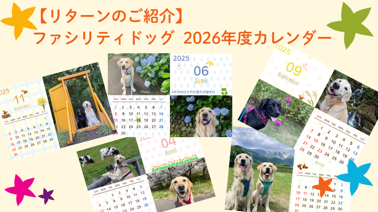 「ホスピタル・ファシリティドッグ®カレンダー2026(4月はじまり)」は、クラウドファンディングのリターン品として、ハンドラーたち自身が毎年チームで手づくりしている特別なカレンダーです。