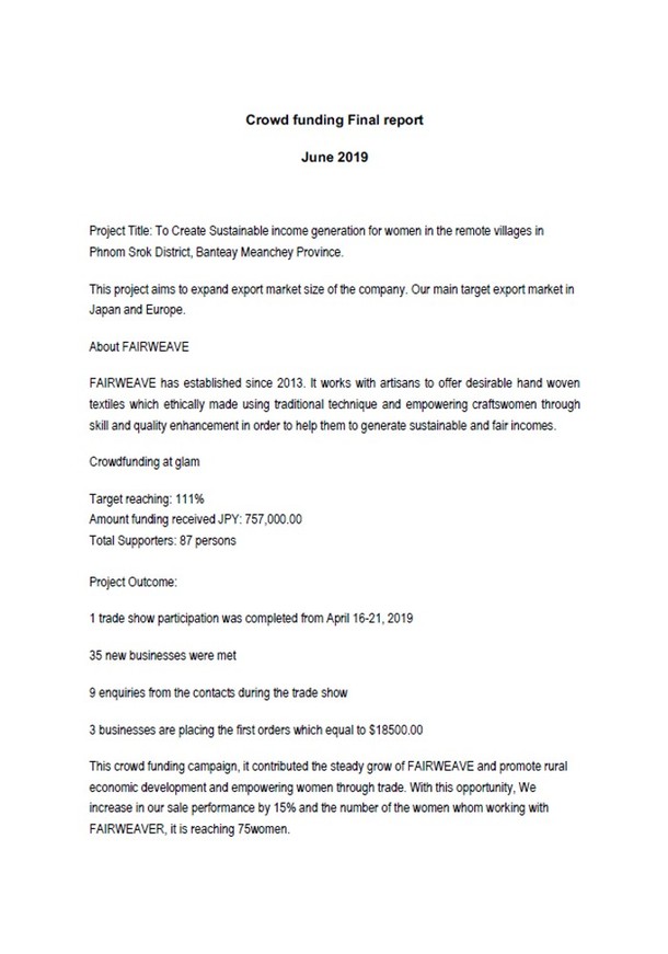 今回のクラウドファンディングの一連の活動を通して、売上が15%増加、農村地域で働く女性を75名まで増やすことが出来ています。