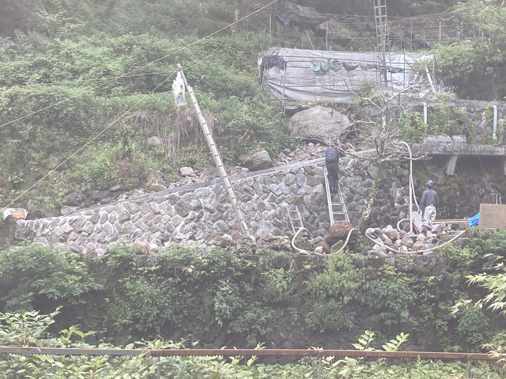 自然の猛威による山の崩落で埋まってしまった沢、崩壊した土手。