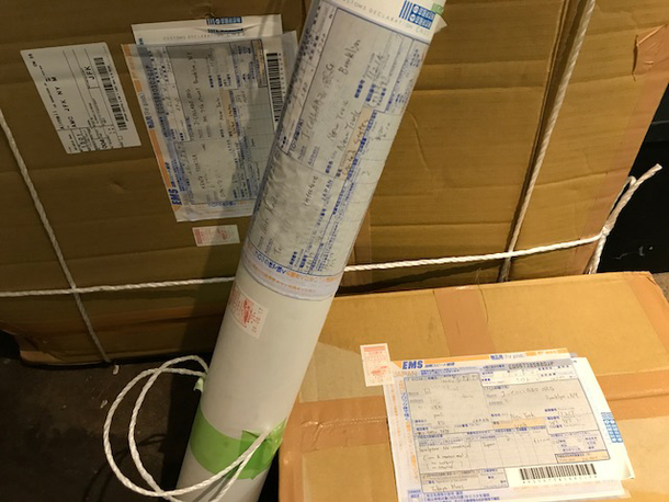 NYの会場に作家の作品がぞくぞくと到着しているようです。