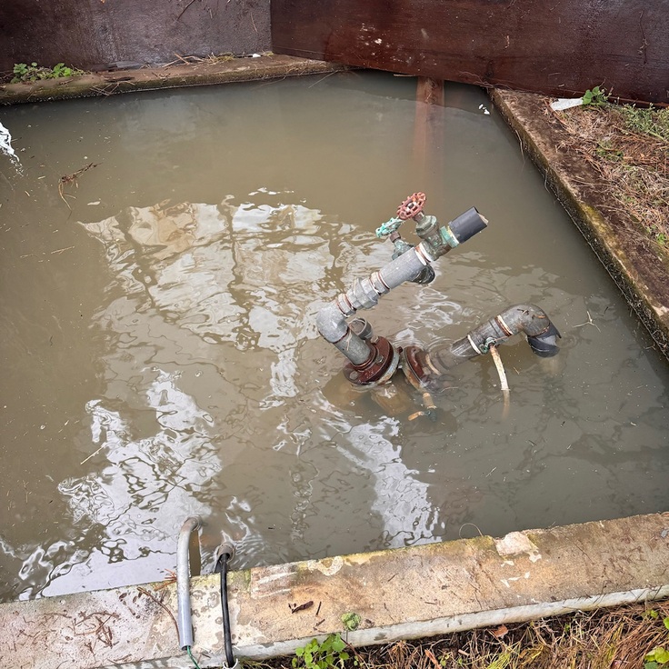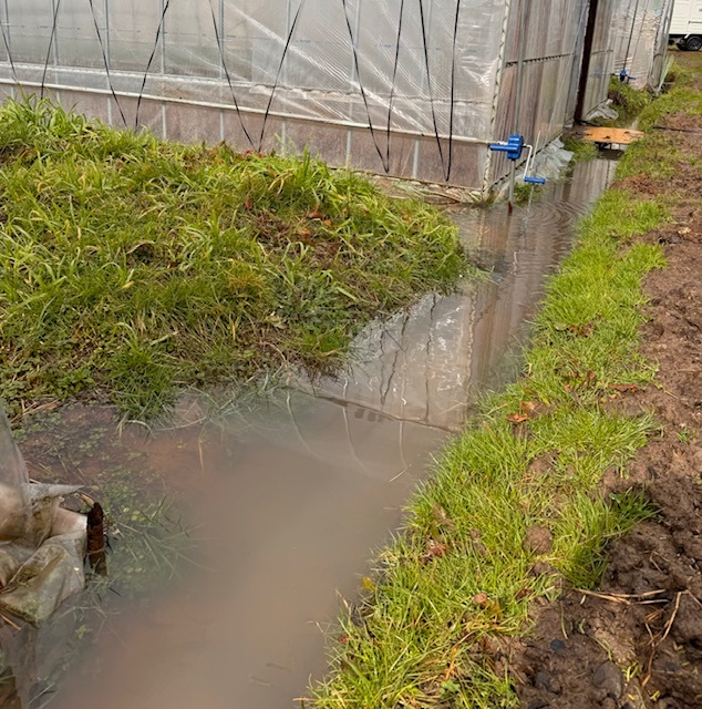 水没したポンプアップシステムです。この仕組みが当農園の野菜の命綱といえます。