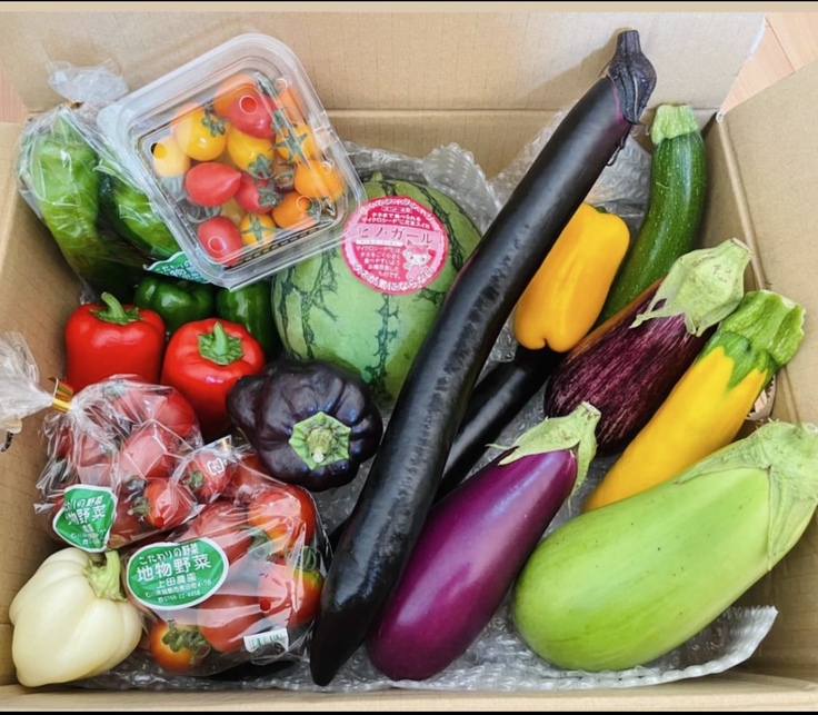 これは夏野菜の販売セットです。沢山の種類を作るには地元販売が必要不可欠です。また沢山の種類を作れるようになりたいです。