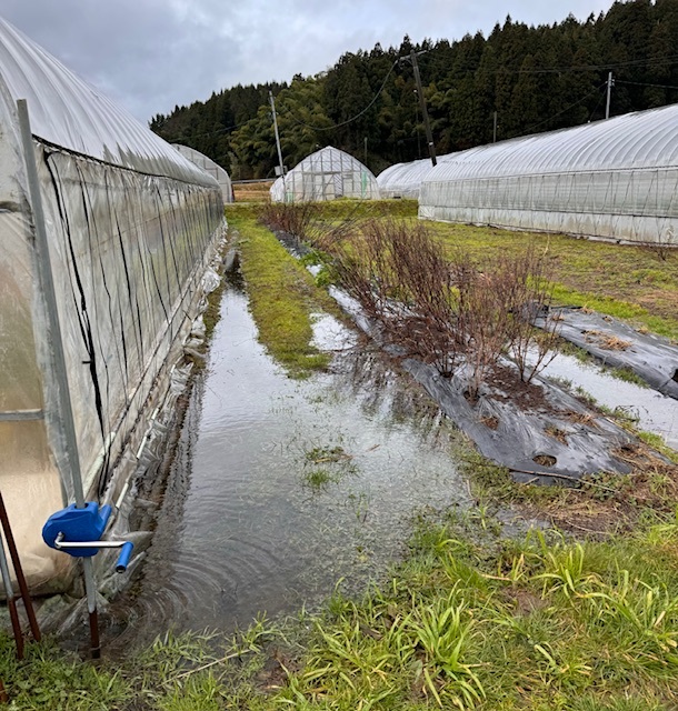 山が崩れ一度は川を塞ぎましたが、土砂が撤去され水をハウスまで引き込めるようになりました。町内の大型ポンプが破損しているのでこの水がなければ栽培できません。