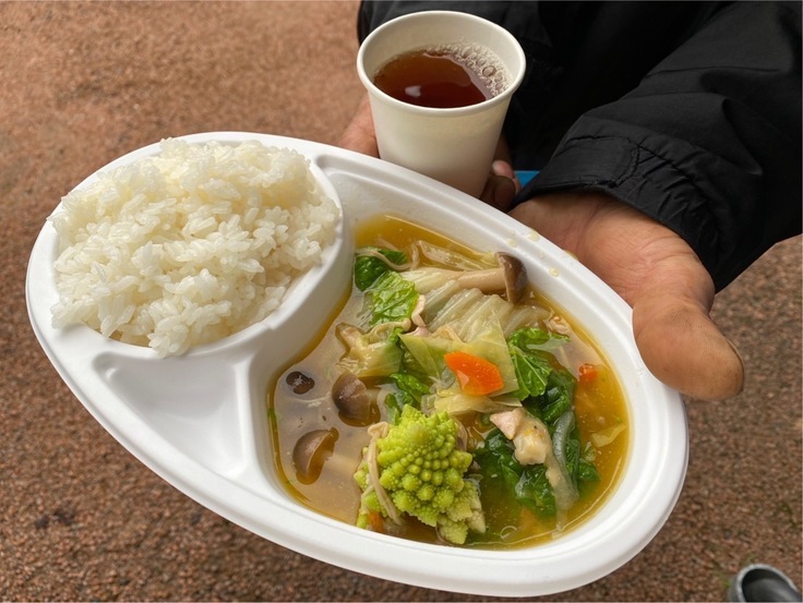 『野菜持っていきます、炊き出しに使ってください。』上田さんからの電話でした。レトルト食品、カップラーメンなどしか物資がない中で、多くの方が涙を流して野菜スープを飲んでくれました。彼は言いました。『僕は野菜しか作れません。必ずまた復活します!』彼の言葉は僕にも勇気を与えてくれます。