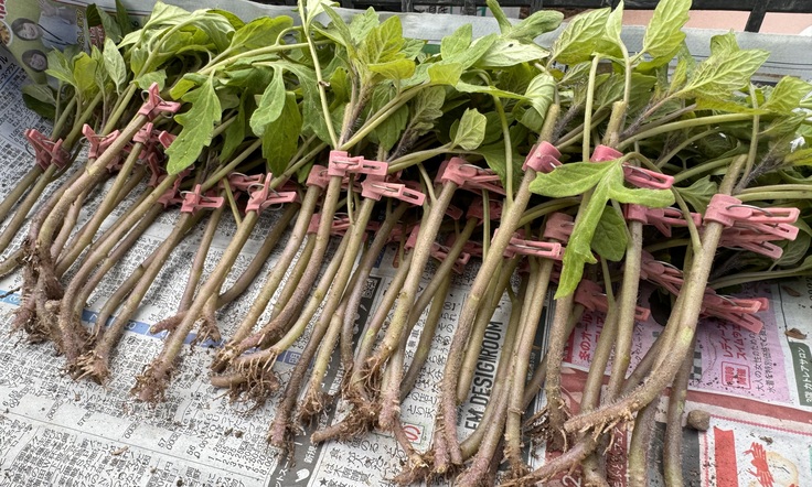 それを回避するため強い根のトマトを同時に育てて接ぎ木し、強い根に美味しいトマトをくっつけます。