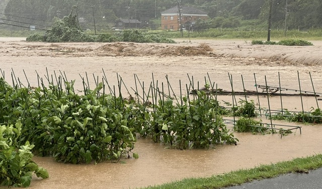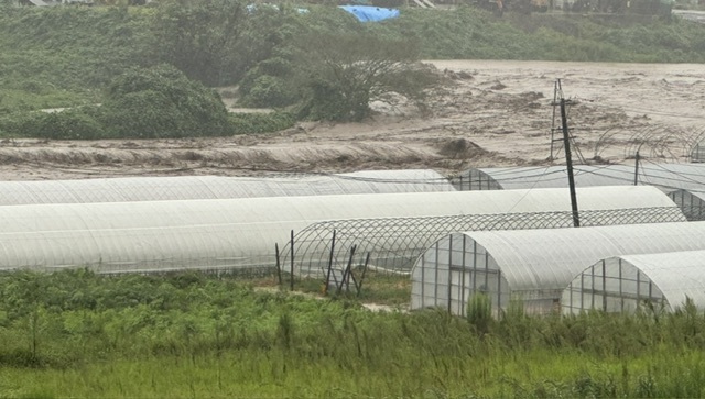 ハウス横の川が氾濫して激流が畑に流れ込みました。