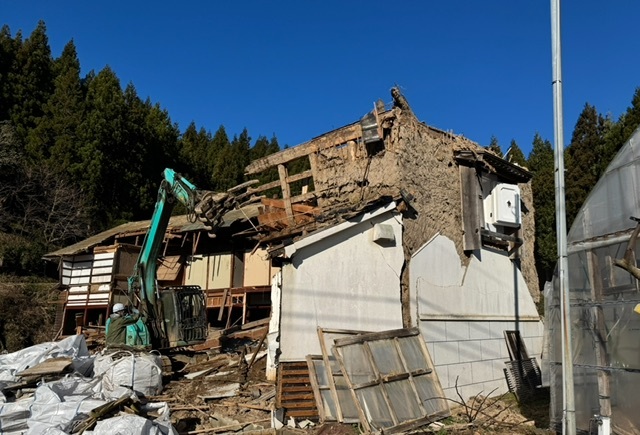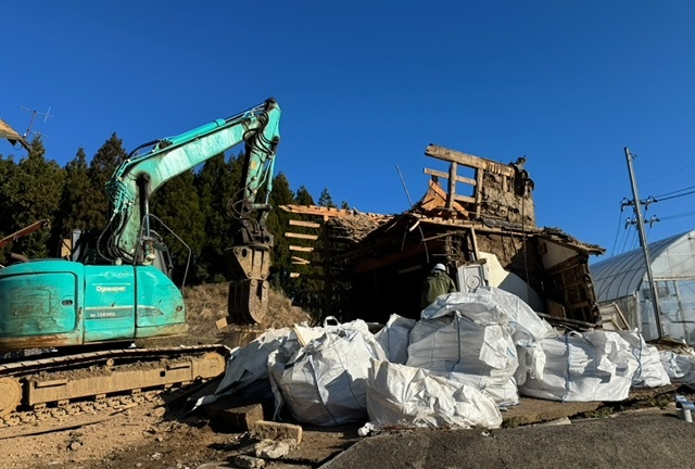 能登では冬に太陽を見るのはかなり珍しいことですが、天候に恵まれ蔵、作業所、実家の三棟同時に解体となりました。