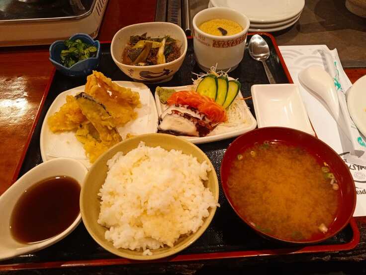 上:老舗日本食レストランの定食(約1600円)