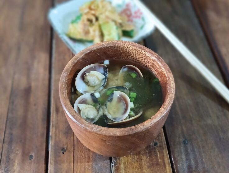 上:その他メニュー(焼きそば、あさりの味噌汁、漬物、大分名物とり天)