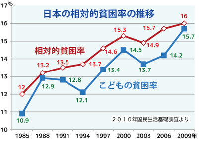 (子どもの貧困が格差社会や離婚率の増加などで増加している実態)