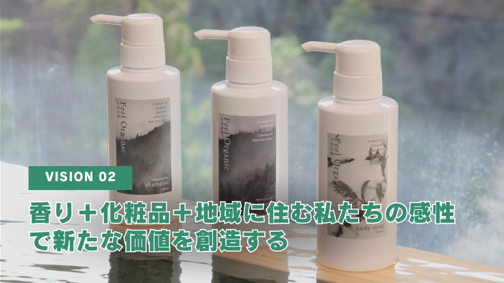 私たちは、『自然×想い』の循環を事業の軸とし、地域の想いを感じられる商品をプロデュースしてきました。記憶や感情に最も影響を与える香りを通し、エモーショナルデザインブランドとして風土を訴求する新しい事業に拡げていきます。