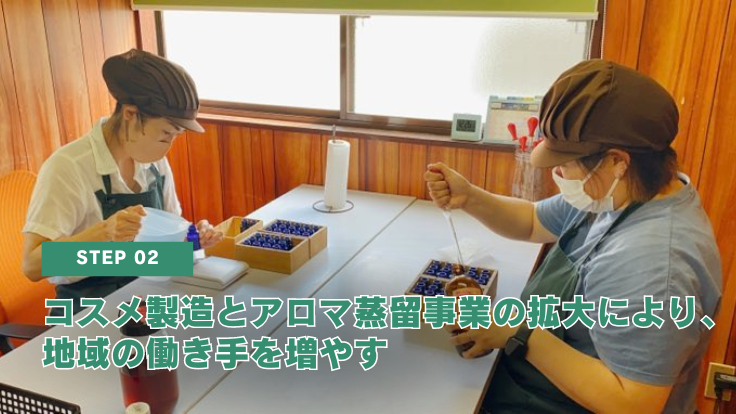 - 地域資源の蒸留技術や化粧品原料、製品に加工するノウハウの提供による商品開発事業