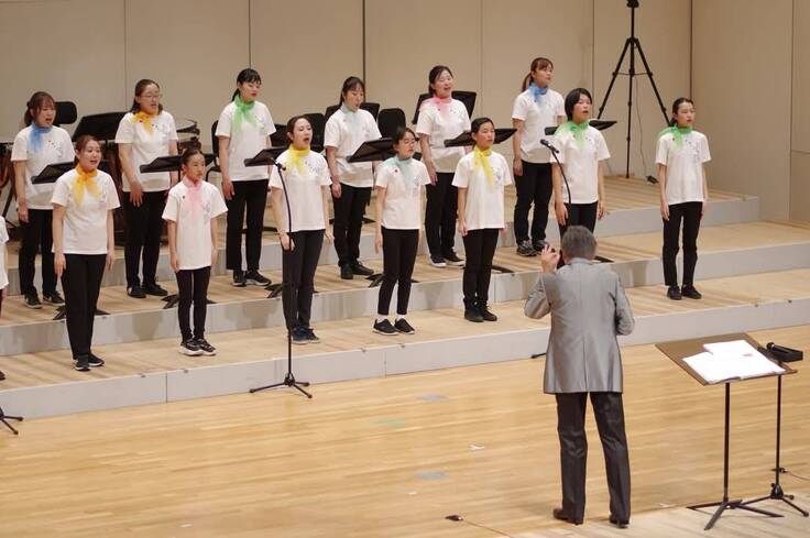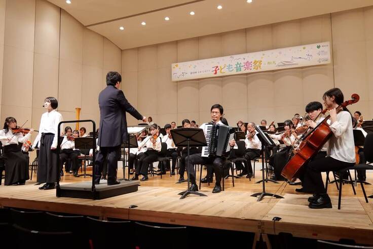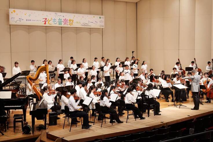 後半は、この第10回についに実現した、オーケストラ&コーラスによる「児童合唱と管弦楽のための組曲『えんそく』」の合同演奏。作曲者の山本直純さんのご子息である山本純ノ介さんと、指揮の古橋先生の校訂者お二方によるトークも、迫力満点の演奏とともにお楽しみいただきました。賛助出演のレガーロ東京の皆様の華やかな歌声にも支えられ、子どもたちの魅力が存分に引き出されたステージとなりました。