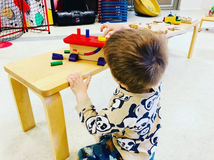 今回の訪問では、クラウドファンディングで日本から送っていただいた木のおもちゃをお披露目することができました。前回よりもたくさんのおもちゃに触れられて、充実した遊び時間になっていたら幸いです。おもちゃを組み合わせて遊びながら新しい発見をしているのを見てとても微笑ましかったです。こちらの男の子は、テルぺんの椅子を積み上げた後に樹種のバラバラな木のたまごを上に乗せて、「お城だ!」と言っていました。なかなか積んで遊ぶことのできない木のたまごをこんなふうに遊べるんだと私のなかでも大きな学びになりました。そして、お城が頭に浮かんでくるのはきっとすぐ近くにトゥルク城がそびえ立っているからなんだろうなとすごく納得しました。