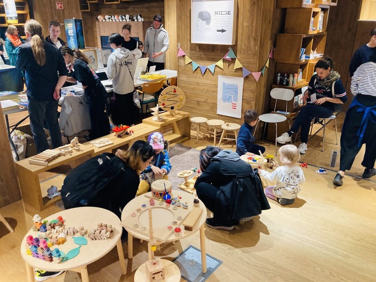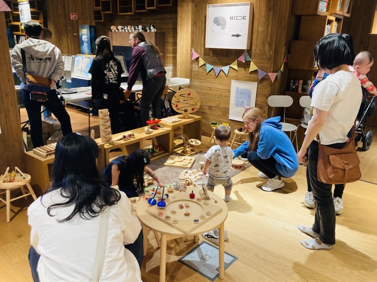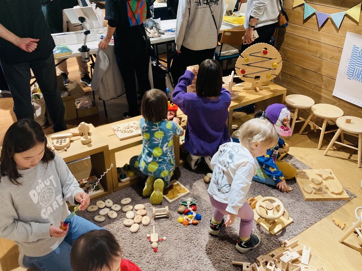 いつもは通路として使われているちょっとした空間だけれど、木のおもちゃがあるだけで、こんなにも家族で笑顔になりながら長い時間を過ごせる場所になったのを見て、とても嬉しかったです。はやく大きな場所でもっと木を感じて、のびのびとリラックスして遊んでもらえる場所をつくりたいなあと、今回も夢が膨らむイベントになりました。