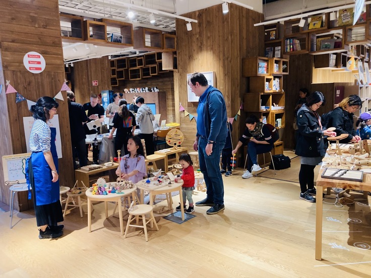 併設のレストランでごはんを食べてまた戻ってきてくれる子も多く、MUJIのなかで行ったり来たりする時間の過ごし方をしてもらえたのは、相乗効果でつくり出すことのできたとても良い点だったと思います。木のおもちゃの魅力がいつにも増して発揮されていました。