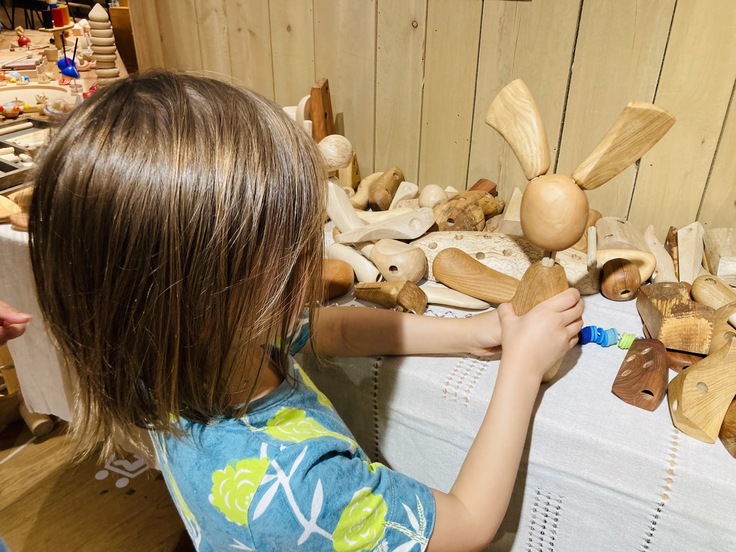 そして明くる日、トゥルクから娘さんを連れて駆けつけてくださった佳奈子さんと一緒に、みなさんを木のおもちゃの世界にお迎えしました。ランチタイムを過ぎる頃から少しずつ立ち止まって遊んでくださるご家族が増えていきました。
