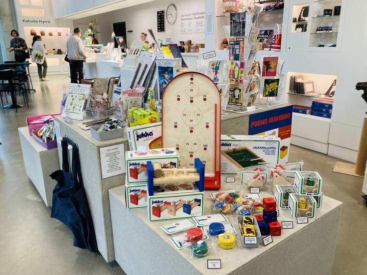 ミュージアムの外には、こちらのユシラ社のおもちゃの展示ポスターが出ていて、とてもかわいらしく癒されました。このポスターは、フィンランドに住むフランス人のデザイナーさんによって作られました。こうしてクラシックなおもちゃの魅力を、グラフィックで伝えるお仕事も本当に素晴らしいと思いました。おもちゃの特徴がしっかり捉えられていて、ユシラ社のおもちゃの世界観がこのポスターに凝縮されています。
